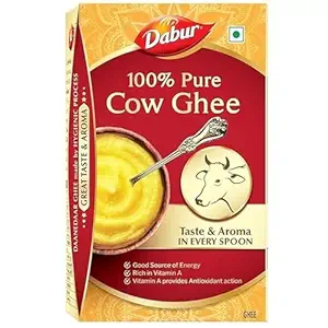 Dabur Pure Cow Ghee is made from fresh, high-quality cow’s milk. Rich, aromatic, and natural, it enhances the taste of meals, sweets, and traditional recipes while promoting health and nutrition.
