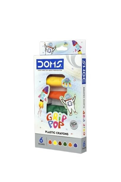 Doms Grip Pop Crayons 6 Shades are vibrant, non-toxic crayons designed for easy grip and smooth coloring. Ideal for kids, they offer bright, blendable colors for creative artwork and fun.