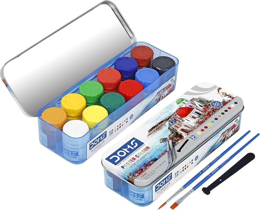 Doms Poster Colour offers vibrant, richly pigmented paints ideal for school projects, art, and craft work. Smooth, blendable, and long-lasting, it brings bold, expressive colors to every creation.