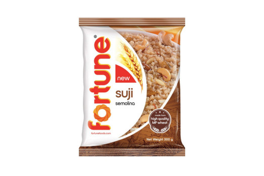 Fortune Suji 500g is premium quality semolina made from carefully selected wheat. Ideal for preparing soft upma, halwa, and other delicious dishes. Fine texture ensures smooth cooking and authentic taste.