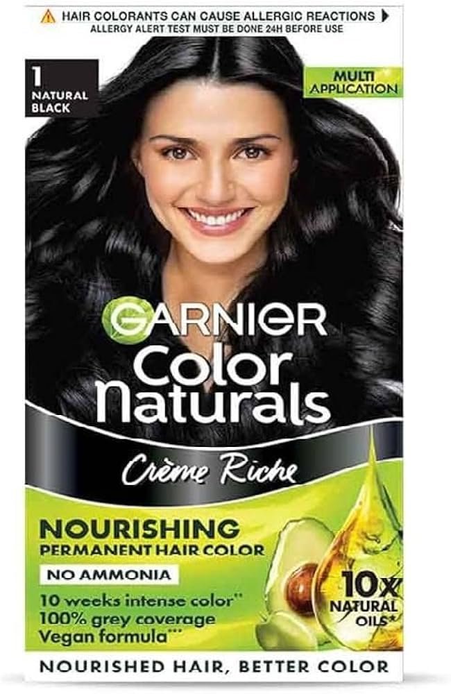 Garnier Color Naturals Black 1 Hair Color delivers intense natural black color with long-lasting results. Its nourishing formula helps cover greys completely while leaving hair soft, smooth, shiny, an