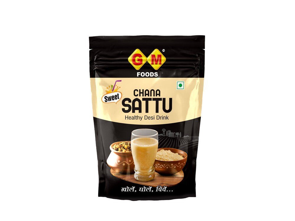 GM Foods Chana Sattu Sweet is made from roasted gram flour blended with a delicious sweet flavor. It provides natural energy, protein, and fiber, making it a refreshing and nutritious drink.