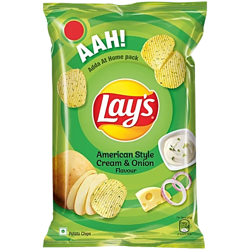 Lay’s American Style Cream & Onion is a crispy potato chip packed with rich creaminess and zesty onion flavor, delivering a bold, savory crunch in every bite.