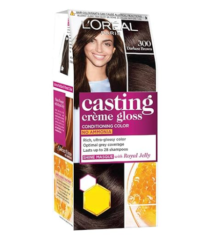 L’Oréal Casting Crème Gloss 3 Darkest Brown is an ammonia-free hair color that delivers natural, rich darkest brown tones. It nourishes hair, adds shine, and provides long-lasting, radiant color with
