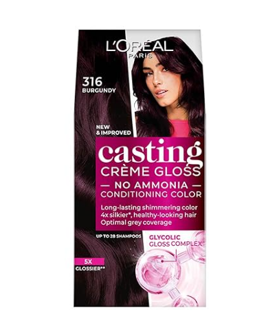 L’Oréal Casting Crème Gloss Burgundy is an ammonia-free hair dye that gives rich burgundy color with glossy shine. It nourishes hair, leaving it soft, vibrant, and beautifully colored with a radiant f