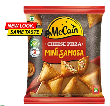 McCain Foods McCain Cheese Pizza Mini Samosa (Frozen) is a delicious frozen snack with cheesy pizza filling in crispy samosa pockets, perfect for quick snacks and parties with a tasty fusion flavor.