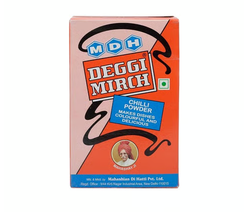 MDH Deggi Mirch 100g – A premium blend of red chilies that adds rich color and mild heat to dishes. Perfect for curries, gravies, and tandoori recipes. Enhances flavor and presentation.