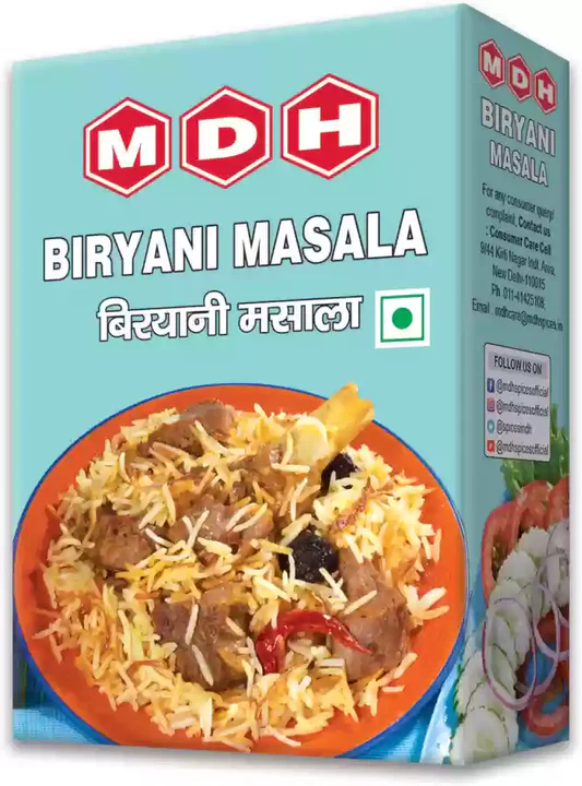 MDH Veg Biryani Masala 60g – Special blend of aromatic spices for rich and flavorful veg biryani. Enhances taste, color, and aroma. Perfect for making delicious restaurant-style biryani at home easily.