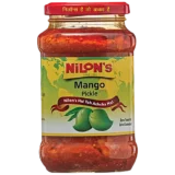 Nilon’s Mango Pickle features tangy, spicy mango pieces blended with rich traditional spices. A bold, flavorful condiment that enhances rice, roti, snacks, and meals with authentic taste.