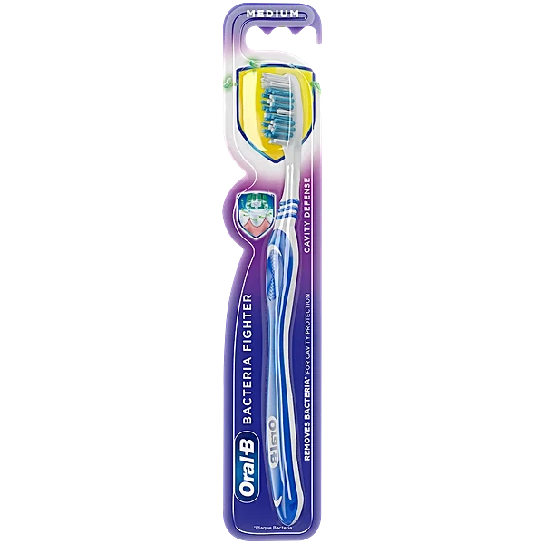 Oral‑B Cavity Defense Medium Toothbrush features specially designed bristles that help remove plaque and protect against cavities, while medium bristles deliver a thorough clean for healthier teeth and gums.