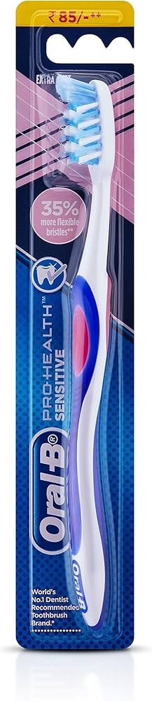 Oral-B CrissCross Extra-Soft E-S toothbrush gently cleans teeth and gums with ultra-soft angled bristles, effectively removing plaque while ensuring a comfortable, irritation-free brushing experience for sensitive mouths.