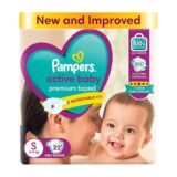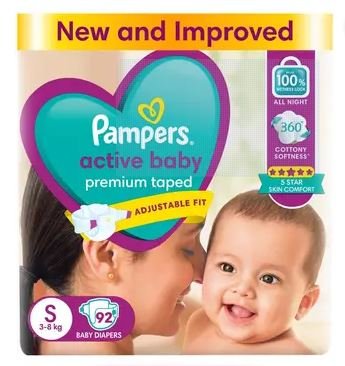 Pampers Active Baby Premium Taped S diapers offer ultra-soft comfort, quick absorption, and secure fit with strong leak protection, keeping your baby’s delicate skin dry and comfortable.