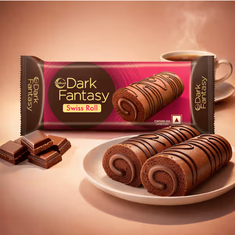 Sunfeast Dark Fantasy Swiss Roll is a soft, chocolate-filled roll cake with rich cocoa flavor, offering a deliciously indulgent treat perfect for snacks and sweet cravings.
